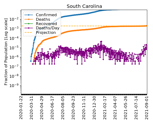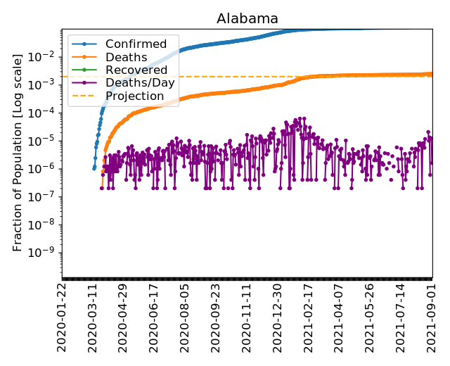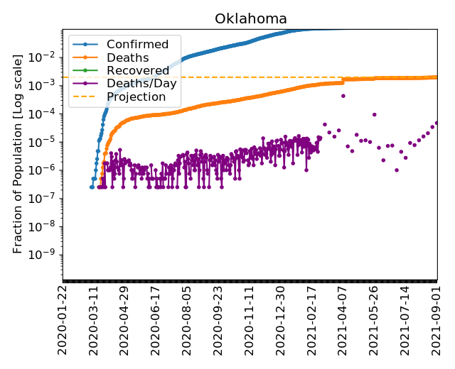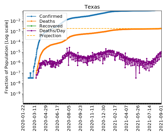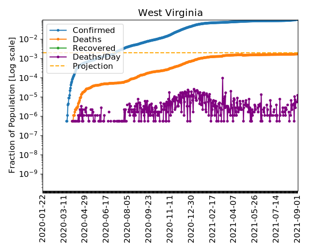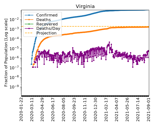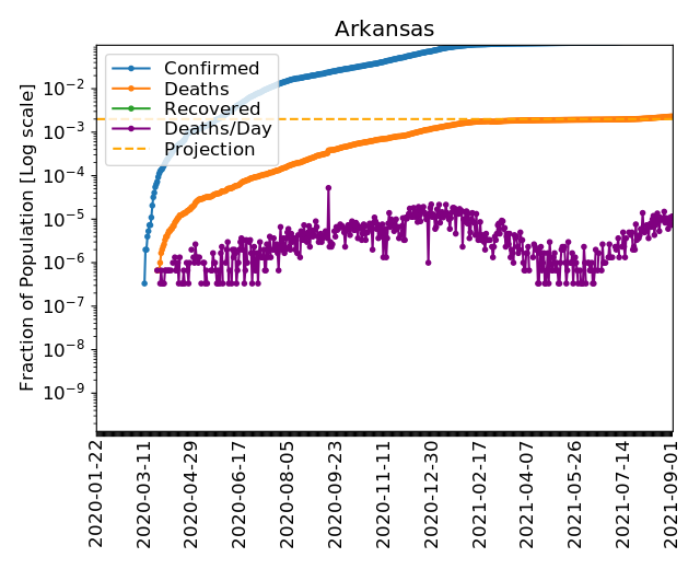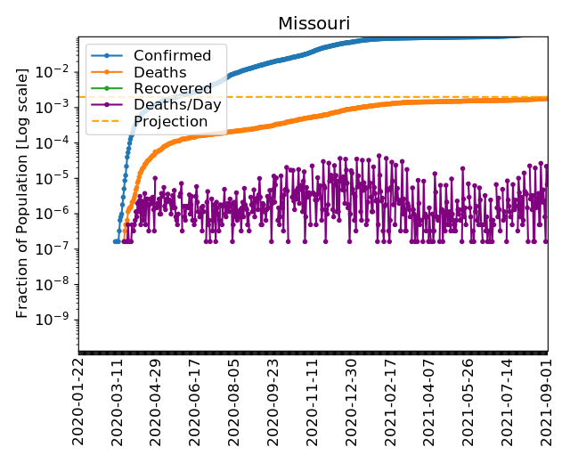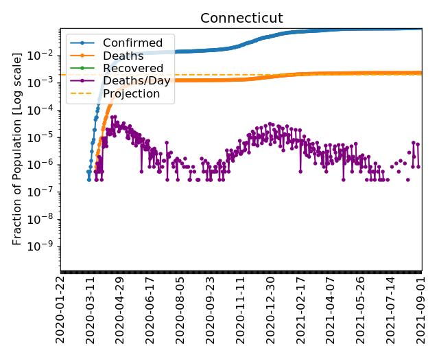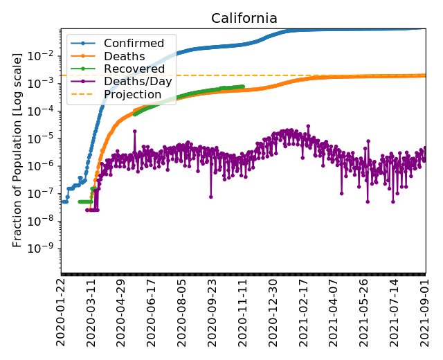 The Covid-19 data is sourced from Johns Hopkins CSSE at